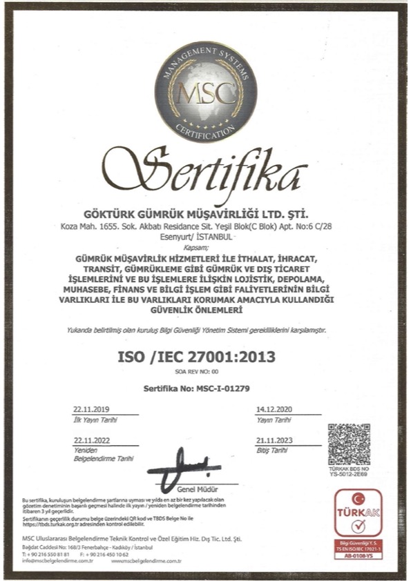 Bilgi güvenliği politikalarımızla tüm verileri koruyor, süreçlerimizi uluslararası bilgi güvenliği standartlarına göre yönetiyoruz.